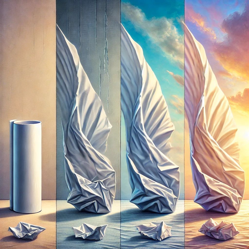 शुरुआत में, कागज़ की एक ताज़ा शीट की तरह, हम लंबे और स्थिर खड़े होने की कोशिश करते हैं। हम सपनों और उम्मीदों से भरे होते हैं, जीवन की हवाओं के खिलाफ़ दृढ़ रहना चाहते हैं। लेकिन जीवन उस तरह से काम नहीं करता है। समय की हवाएँ – परिवार, दोस्तों, समाज या यहाँ तक कि आत्म-संदेह का दबाव – हमें झुकने के लिए मजबूर करता है।